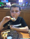 A guy's night out with the boy and his bacon-wrapped wings. "Mommy was right, these are the best wings," he says.