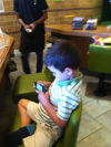 Luke takes his Transformers seriously. Here he is checking up on Wikipedia using my BlackyBerry after lunch. (I don't think this picture really shows his concentration.)